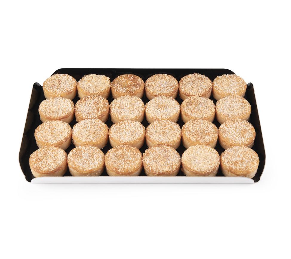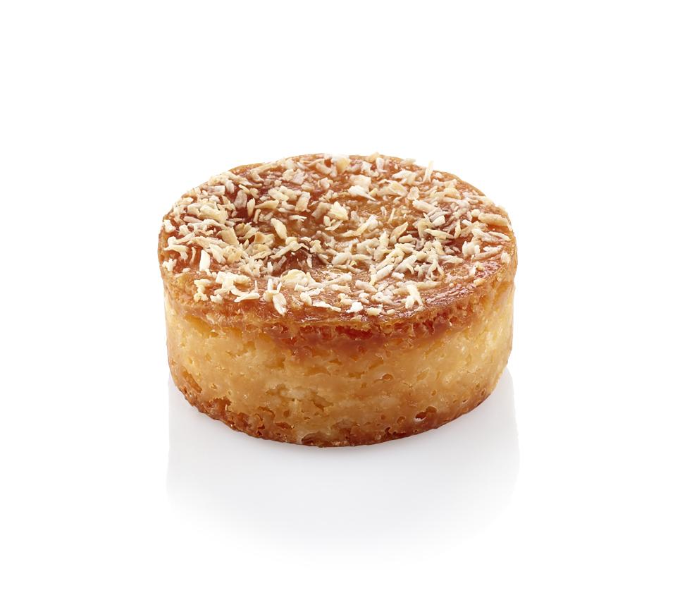 Offre mono-variété : appareil aux œufs au lait de coco, décor noix de coco râpée (42% de noix de coco).