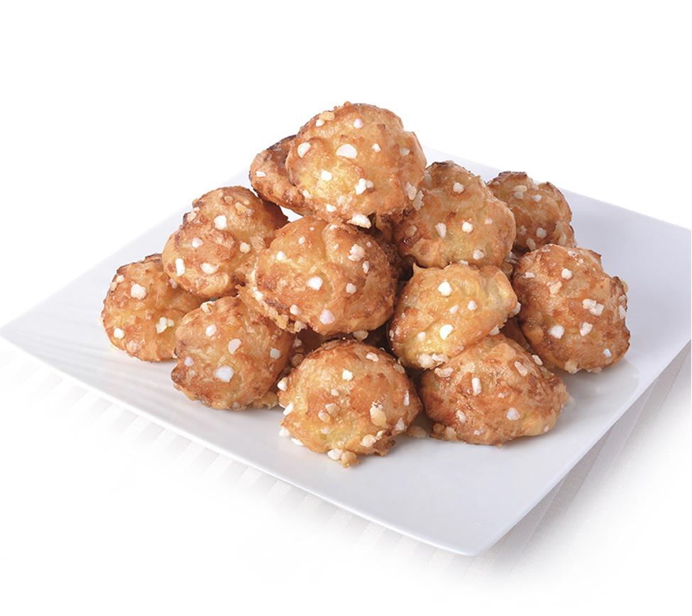 Pâte à choux aux œufs, grains de sucre. (Crue surgelée : 10 feuilles de 54 chouquettes)